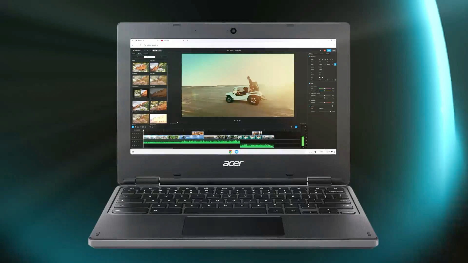 elevate.io takes care of all heavy video processing in the cloud, meaning you can create stunning 4K Ultra HD videos right on your Chromebook.